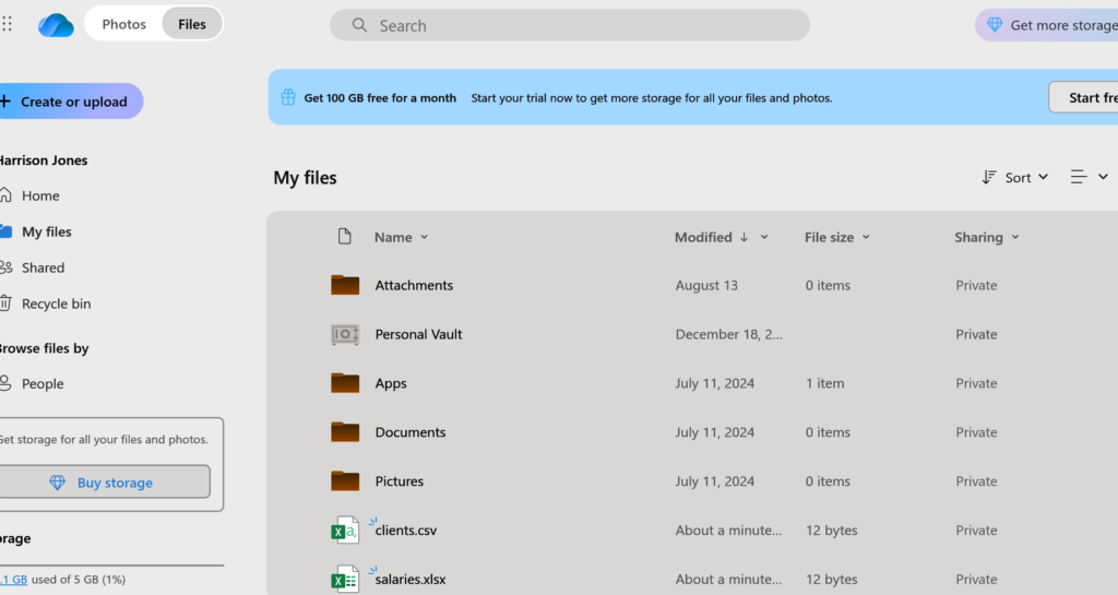 The first step is to create these ‘confidential files’ on the target machine and upload them to Onedrive, like a criminal would if they were stealing or uploading explicit pictures.