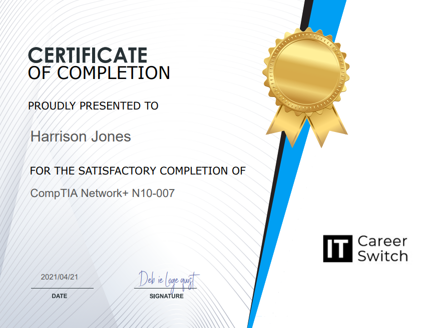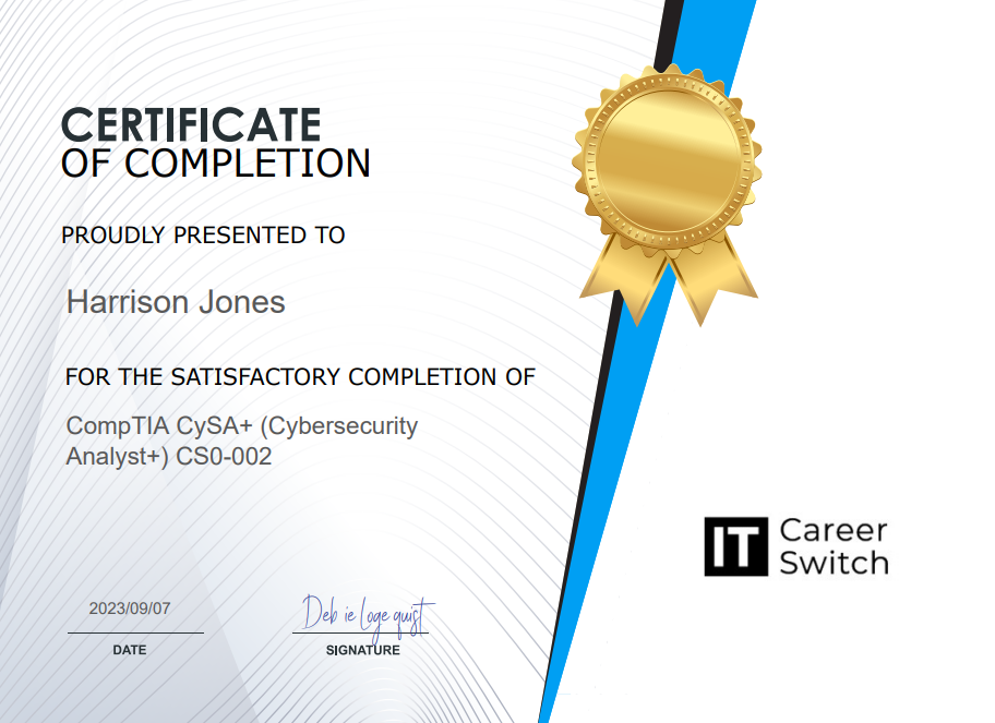 IT career switch provided me with 12 total courses which gave me a base line understanding of IT then provided speciality courses, labs and assessments in security. The first half of the course I got hands on experience with administration and basic networking before starting my first IT job. Now over the past 12 the studies went in depth on vulnerability management, Linux administration and incident response.